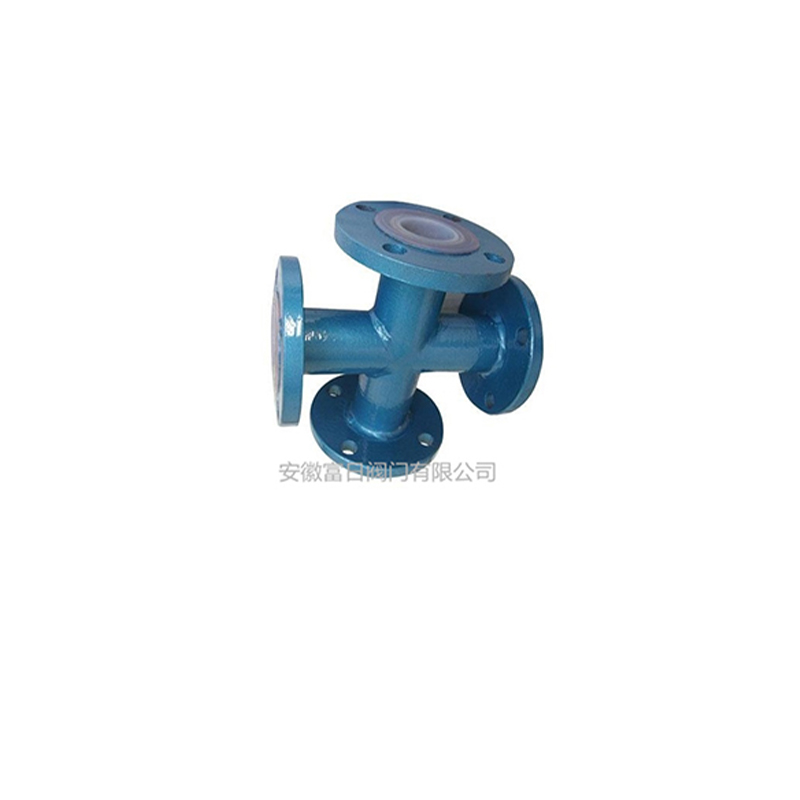 衬氟四通壳体材料选用碳钢或不绣钢等,耐压高;适用于小于180℃的各种浓度的王水、硫酸、盐酸和各种有机酸、强酸、强氧化剂的介质。