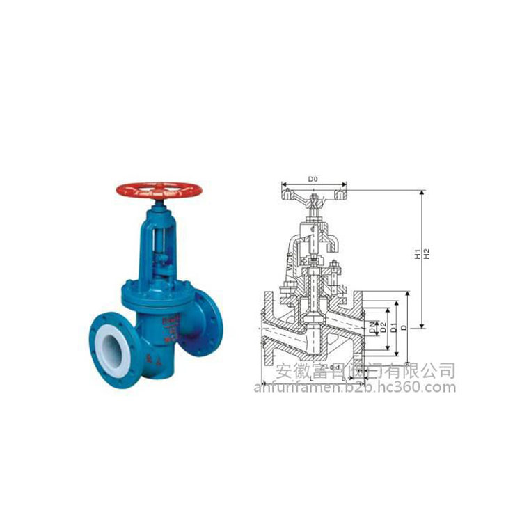 安徽富日阀门公司生产的J41F46法兰衬氟截止阀外壳体采用熔模精密铸造,强度高、外观光洁,与液体接触内腔、阀体、阀盖、阀瓣等(即化学介质过流部件)部件均选用优良的耐腐蚀材料(氟塑料)作为衬里或包覆材料,采用模压衬里成型工艺技术使阀门既有金属的强度有又耐腐蚀的特性。其阀座采用整体式聚合物作密封材料,在较宽的温度和压力范围内具有优良的密封性能;启闭件(阀瓣)由阀杆带动并沿阀座中心轴线作升降运动的阀门,在管路上主要用来接通或截断管路中的介质,但不能做节流用。