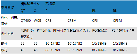 主要零部件材料表:
