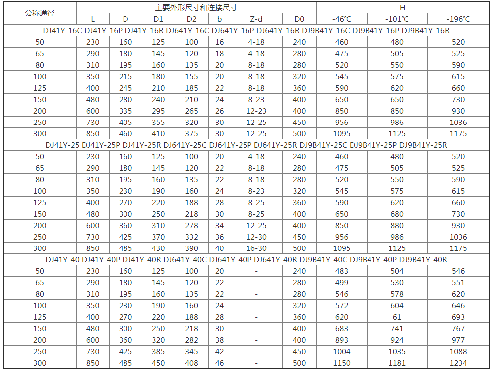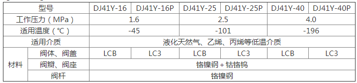 DJ41Y、DJ41W 型 PN16~PN40 低温截止阀适用于低温液体贮运设备的管理系统,具有开关灵活、密封可靠的特点,也可用于其他低温和深冷介质的管理系统。
