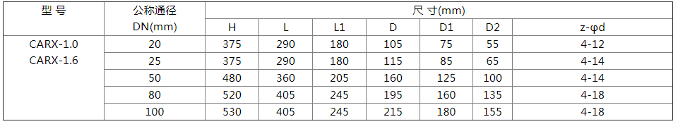 CARX复合式排气阀每小时排气量表: