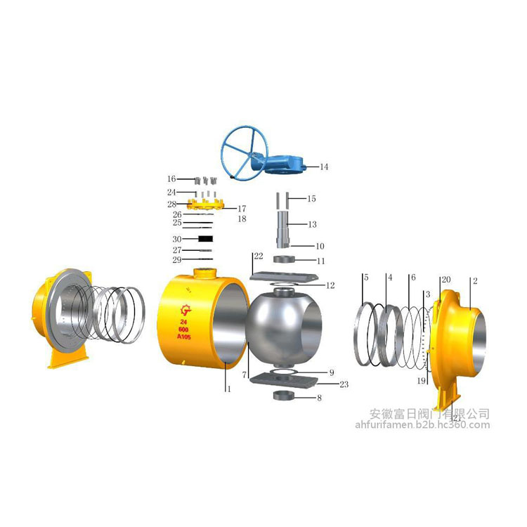 3、钢管全焊接球阀球密封中的碟形弹簧使阀球与阀球密封之间保持良好的密合性,并能及时补偿阀球与阀球密封之间的磨损。