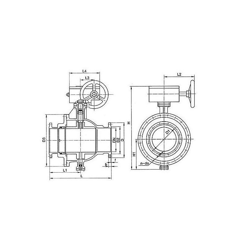 铸钢涡轮球阀规格尺寸: