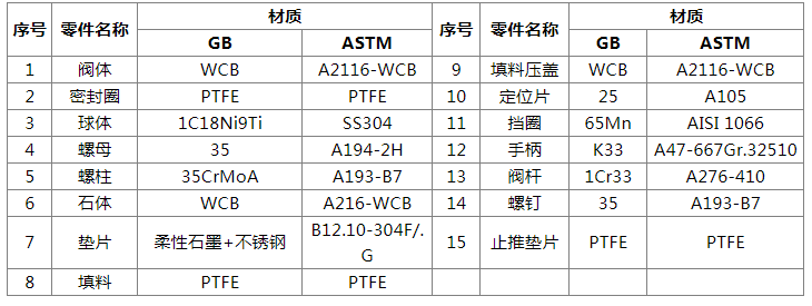 铸钢涡轮球阀零件材料: