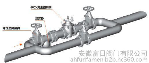 400X流量控制阀,是一种采用高精度先导方式控制流量的多功能阀门。适用于配水管需控制量和压力的管路中,保持预定流量不变,将过大流量限制在一个预定值,并将上游高压适当减低,即使主阀上游的压力发生变化,也不会影响主阀下游的流量。该阀一改常规节流阀使用孔板或纯机械的减小流域面积的原理,利用相关导阀**地减小能量在节流过程中的损失。该阀控制灵敏度高,安全可靠,调试简便,使用寿命长。