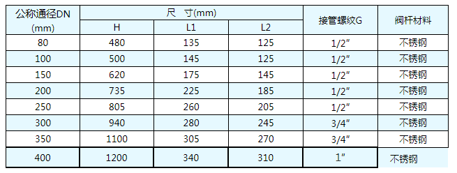 主要外型尺寸(法兰连接尺寸GB4216—84标准)