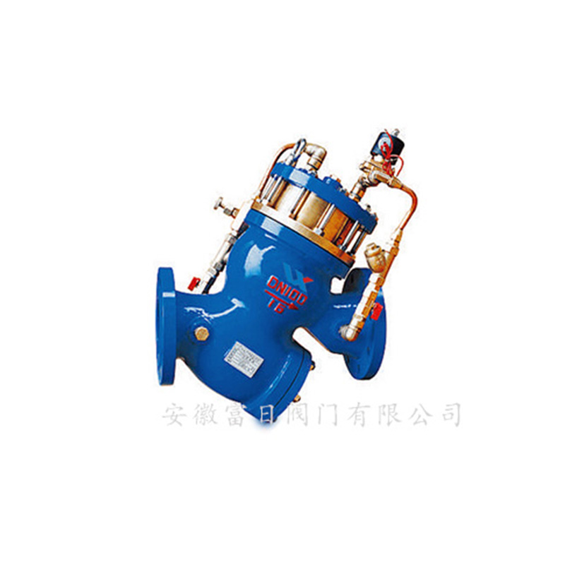 YQ98006过滤活塞式电磁控制阀是本公司新研究的一种新型产品,产品结构主要由:主阀、电磁导阀、针阀、球阀、微形过滤器组成水力控制接管系统。通过电磁导阀可以实现对阀门开启和关闭的遥控。当阀门从进口端给水时,水流流过针阀进入主阀上腔控制室,当电磁导阀打开时,控制室内的水经电磁导阀、球阀流出。球阀开度大于针阀开度,主阀上腔控制室内压力变低,主阀处于全开状态。当电磁导阀关闭时,主阀上腔控制室的水不能流出,控制室升压,推动活塞关闭主阀。本产品利用导阀控制阀门的开启和关闭,反映准确快速,采用三向电磁阀,维护简单。安装于各类给水系统的管道上。