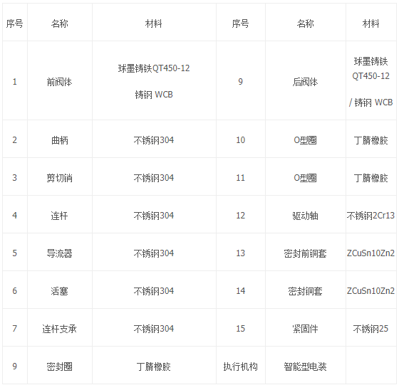 HS941X活塞式电动调流调压阀产品零部件材质: