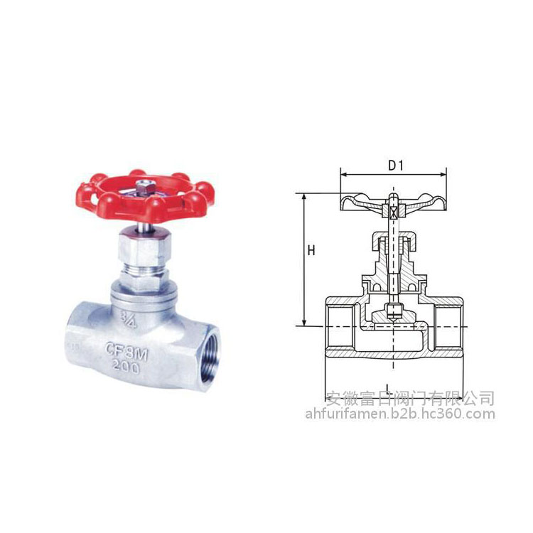 安徽富日阀门公司生产的不锈钢内螺纹截止阀主要用来切断(或接通)管路介质,适用于化工等行业的硝酸、醋酸等场合。采用明杆支架式,螺栓连接阀盖结构,旋转升降阀杆和手轮、阀体、阀盖的设计经过严格的计算。具有良好的强度、刚度和流通能力。阀盖上设计了上密封座,在全开状态下使填料密封更为可靠,并方便填料的更换。适用于石油、化工、冶金、电力、造纸、制药、食品、水处理、石油、化工、火力电站等各种工况的管路上,切断或接通管路介质。