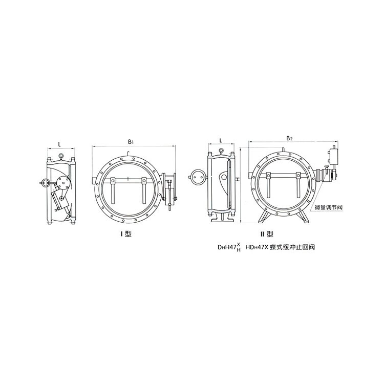 本厂生产的H47X、H47H、HH47X、HH47H、H47XF、HDH47X型蝶式缓冲止回阀,主要用于工业供水、污水处理厂的水泵出口处,防止管网中介质逆流。自动消除破坏性水锤,从而保证水泵和管路不受损坏。该阀主要由阀体、阀瓣、缓冲装置和微量调节阀组成。该产品具有结构新颖、体积小、流体阻力小、运行平稳、密封可靠、耐磨损、缓冲性能好等特点,是工业用水和城市排污的**产品。