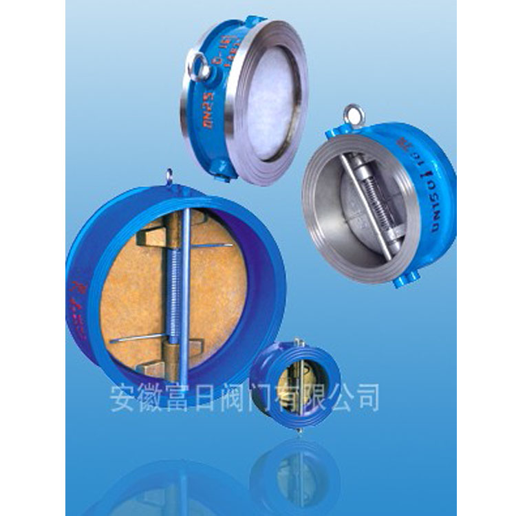 安徽富日阀门有限公司生产的H76X铸铁对夹止回阀、H76X对夹蝶式双瓣止回阀由阀体、阀瓣、阀杆及弹簧等零件组成,采用对夹连接。由于阀瓣的关闭行程短,并且有弹簧加载,可显著减少水锤现象。该阀主要适用于城市、工业及高层建筑给水、排水管网上。由于其结构长度比一般止回阀短,对有安装空间限制的场所**适用。