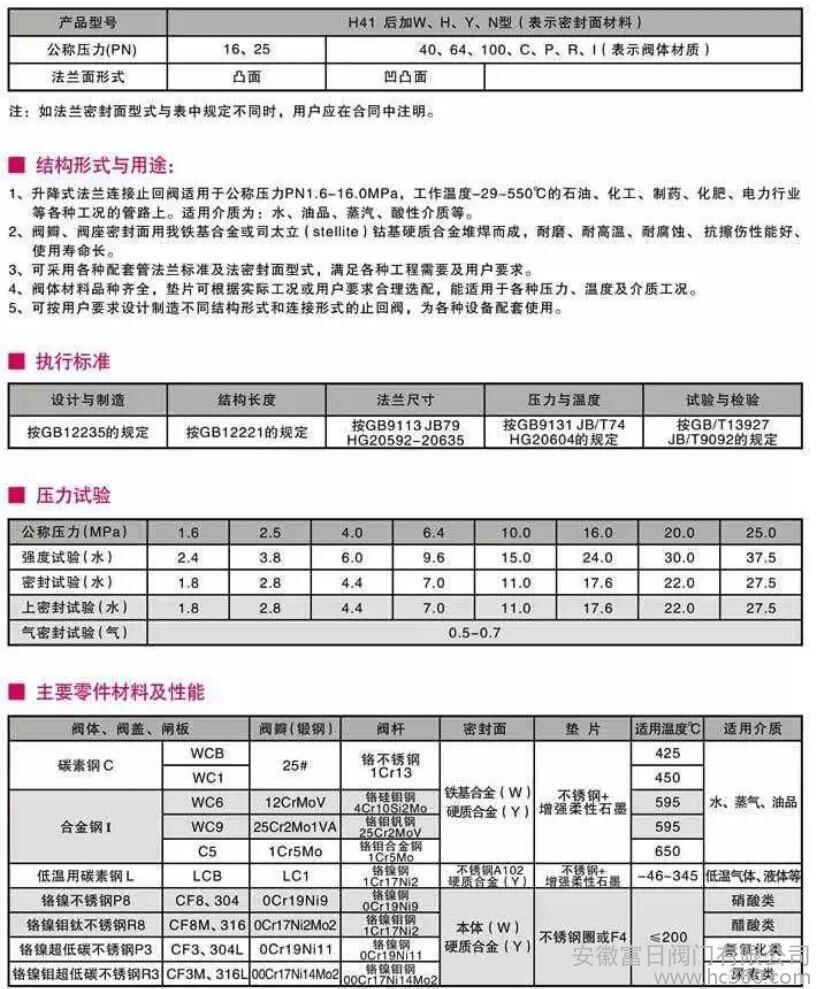 法兰升降式止回阀 止回阀 H41H-25C: